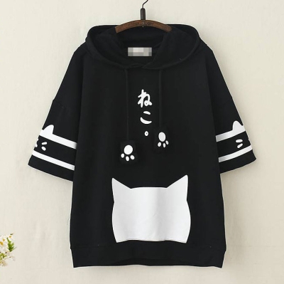 Sweat à capuche d'été imprimé chat chaton japonais Kawaii