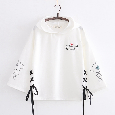 Sweat à capuche lacé à imprimé chaton Kawaii