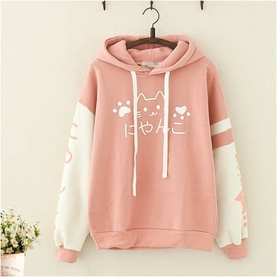 Sweat à capuche chat Kawaii Meow