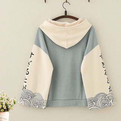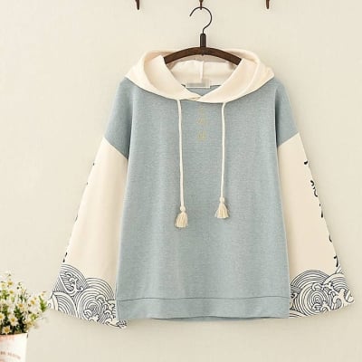 Sweat à capuche imprimé vague de style japonais